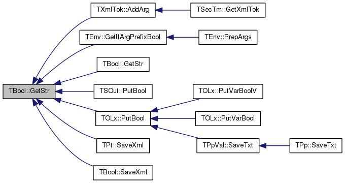 Referenced by TXmlTok::AddArg(), TEnv::GetIfArgPrefixBool(), GetStr(), TSOut::PutBool(), TOLx::PutBool(), TPt< TRec >::SaveXml(), and SaveXml().