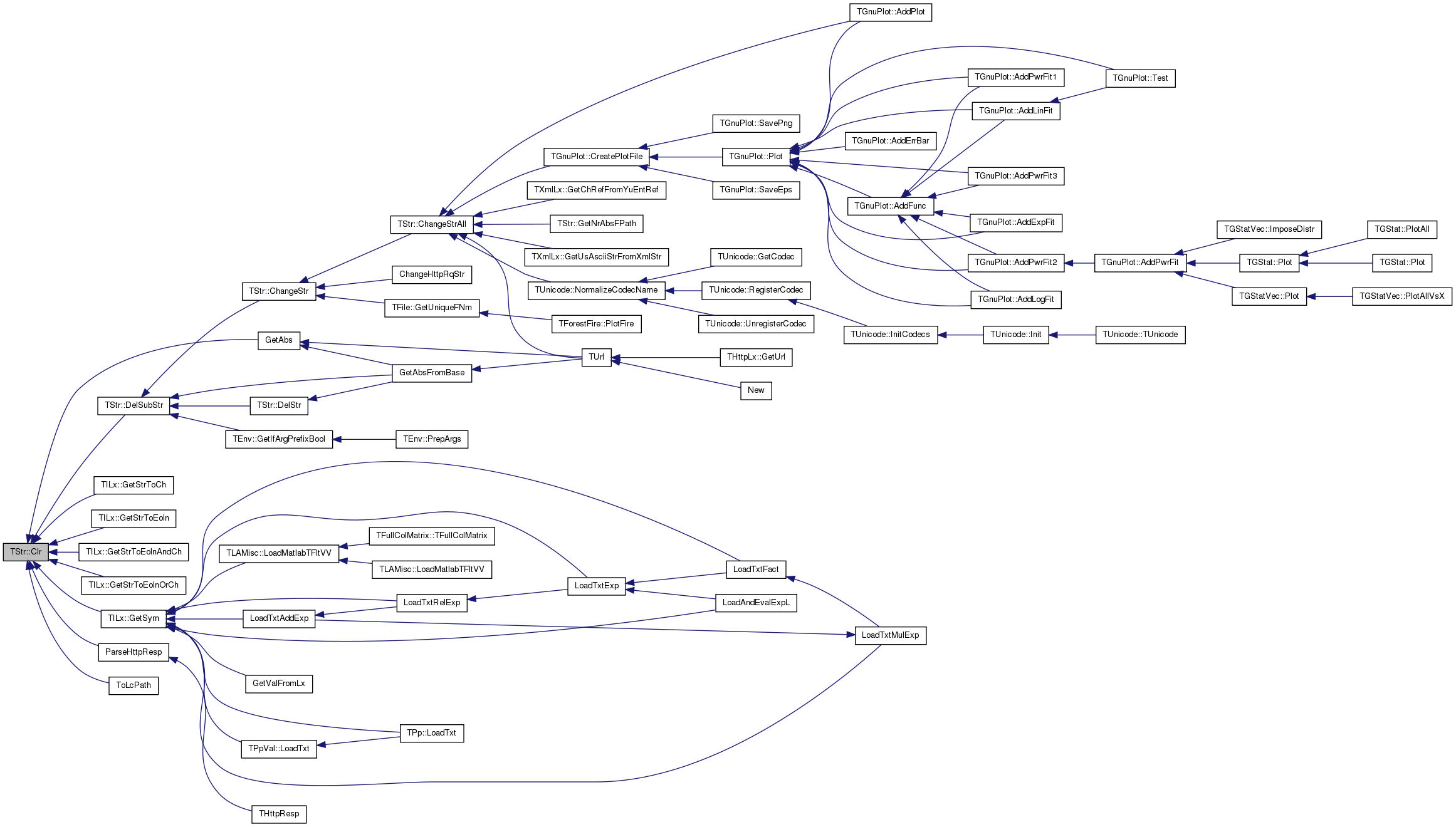 Referenced by ChangeChAll(), Clr(), ConvUsFromYuAscii(), CStr(), Empty(), FromHex(), GetCh(), GetMemUsed(), GetPrimHashCd(), GetSecHashCd(), IsLc(), IsPrefix(), IsSuffix(), IsUc(), Len(), operator!=(), operator()(), operator+=(), operator<(), operator=(), operator==(), operator[](), Optimize(), PutCh(), Save(), ToCap(), ToHex(), ToLc(), ToUc(), TStr(), and ~TStr().