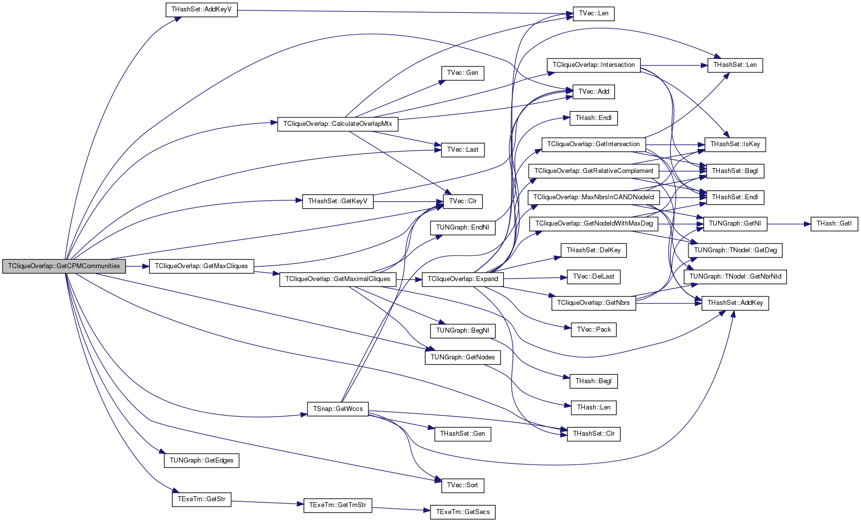 | static void | GetCPMCommunities (const PUNGraph &G, int MinMaxCliqueSize, TVec< TIntV > &Communities) |