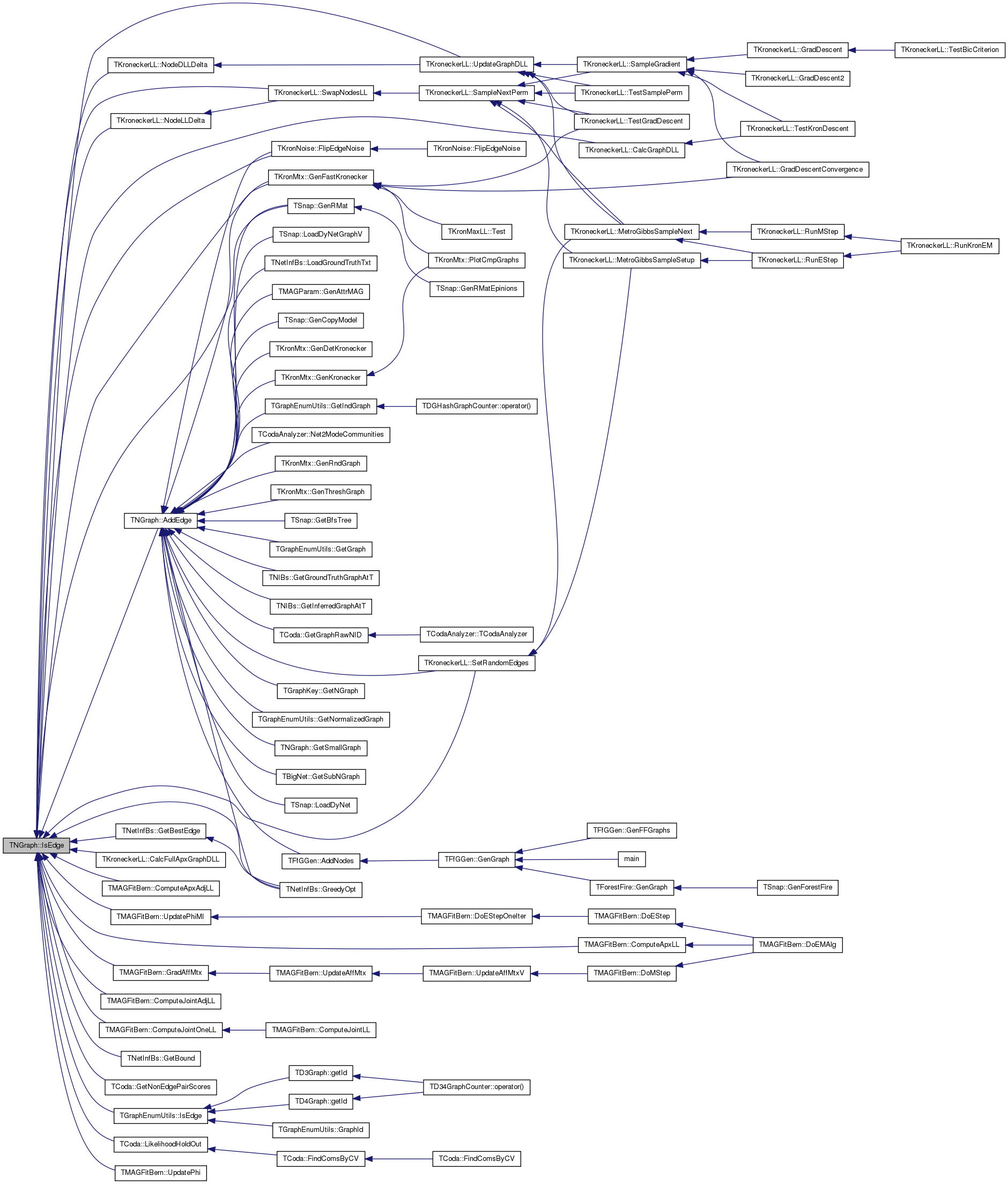 Referenced by AddEdge(), TKroneckerLL::CalcFullApxGraphDLL(), TKroneckerLL::CalcGraphDLL(), TMAGFitBern::ComputeApxAdjLL(), TMAGFitBern::ComputeApxLL(), TMAGFitBern::ComputeJointAdjLL(), TMAGFitBern::ComputeJointOneLL(), TKronNoise::FlipEdgeNoise(), TKronMtx::GenFastKronecker(), TSnap::GenRMat(), TNetInfBs::GetBestEdge(), TNetInfBs::GetBound(), TCoda::GetNonEdgePairScores(), TMAGFitBern::GradAffMtx(), TNetInfBs::GreedyOpt(), TGraphEnumUtils::IsEdge(), TCoda::LikelihoodHoldOut(), TKroneckerLL::NodeDLLDelta(), TKroneckerLL::NodeLLDelta(), TKroneckerLL::SetRandomEdges(), TKroneckerLL::SwapNodesLL(), TKroneckerLL::UpdateGraphDLL(), TMAGFitBern::UpdatePhi(), and TMAGFitBern::UpdatePhiMI().