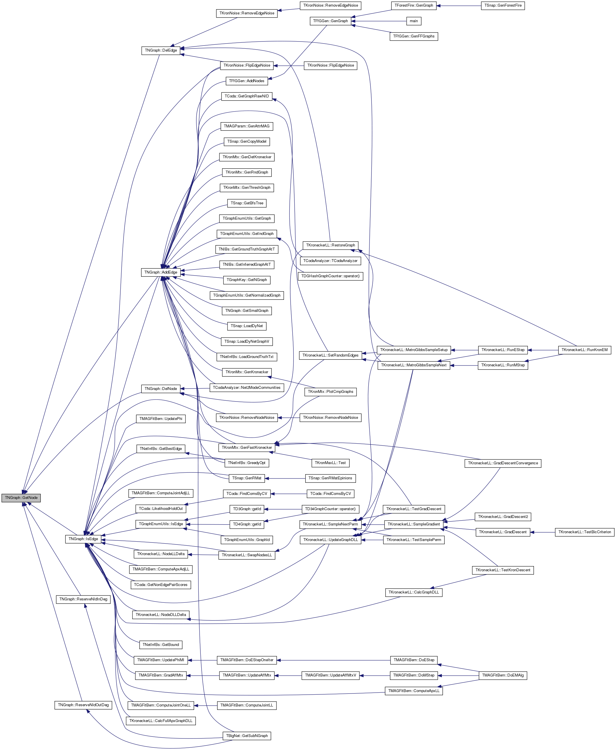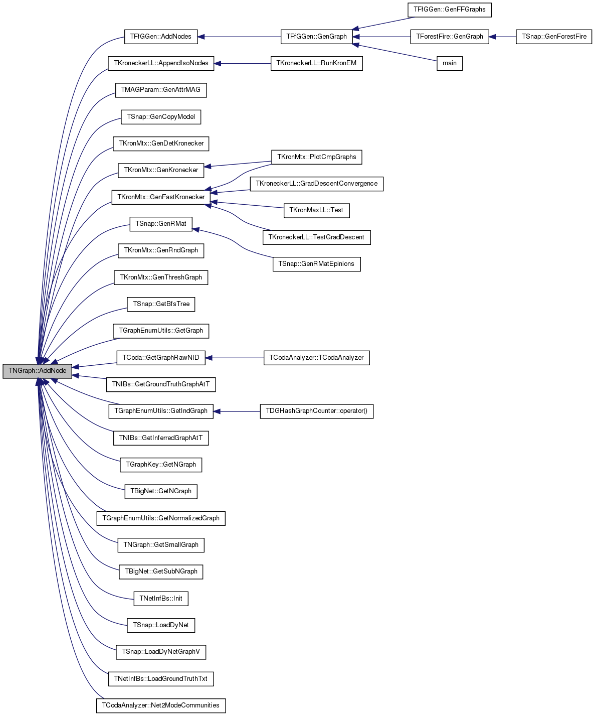 Referenced by TMAGParam< TNodeAttr >::GenAttrMAG(), TSnap::GenCopyModel(), TKronMtx::GenDetKronecker(), TKronMtx::GenFastKronecker(), TKronMtx::GenKronecker(), TSnap::GenRMat(), TKronMtx::GenRndGraph(), TKronMtx::GenThreshGraph(), TSnap::GetBfsTree(), TD34GraphCounter::GetGraph(), TCoda::GetGraphRawNID(), TNIBs::GetGroundTruthGraphAtT(), TNIBs::GetInferredGraphAtT(), TGraphEnumUtils::GetIsoGraphs(), TGraphKey::GetNGraph(), TBigNet< TNodeData, IsDir >::GetNGraph(), GetSmallGraph(), TBigNet< TNodeData, IsDir >::GetSubNGraph(), TNetInfBs::Init(), TSnap::LoadDyNet(), TSnap::LoadDyNetGraphV(), TNetInfBs::LoadGroundTruthTxt(), main(), TCodaAnalyzer::Net2ModeCommunities(), TDGHashGraphCounter::operator()(), TCoda::TCoda(), and TCodaAnalyzer::TCodaAnalyzer().