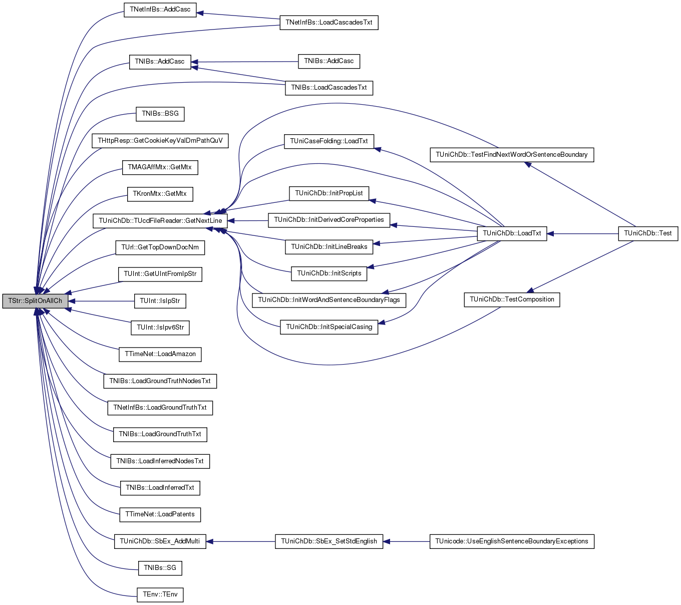 Referenced by TNetInfBs::AddCasc(), TNIBs::AddCasc(), TNIBs::BSG(), THttpResp::GetCookieKeyValDmPathQuV(), TMAGAffMtx::GetMtx(), TKronMtx::GetMtx(), TUniChDb::TUcdFileReader::GetNextLine(), TUrl::GetTopDownDocNm(), TUInt::GetUIntFromIpStr(), TUInt::IsIpStr(), TUInt::IsIpv6Str(), TTimeNet::LoadAmazon(), TNetInfBs::LoadCascadesTxt(), TNIBs::LoadCascadesTxt(), TNIBs::LoadGroundTruthNodesTxt(), TNetInfBs::LoadGroundTruthTxt(), TNIBs::LoadGroundTruthTxt(), TNIBs::LoadInferredNodesTxt(), TNIBs::LoadInferredTxt(), TTimeNet::LoadPatents(), TUniChDb::SbEx_AddMulti(), TNIBs::SG(), and TEnv::TEnv().