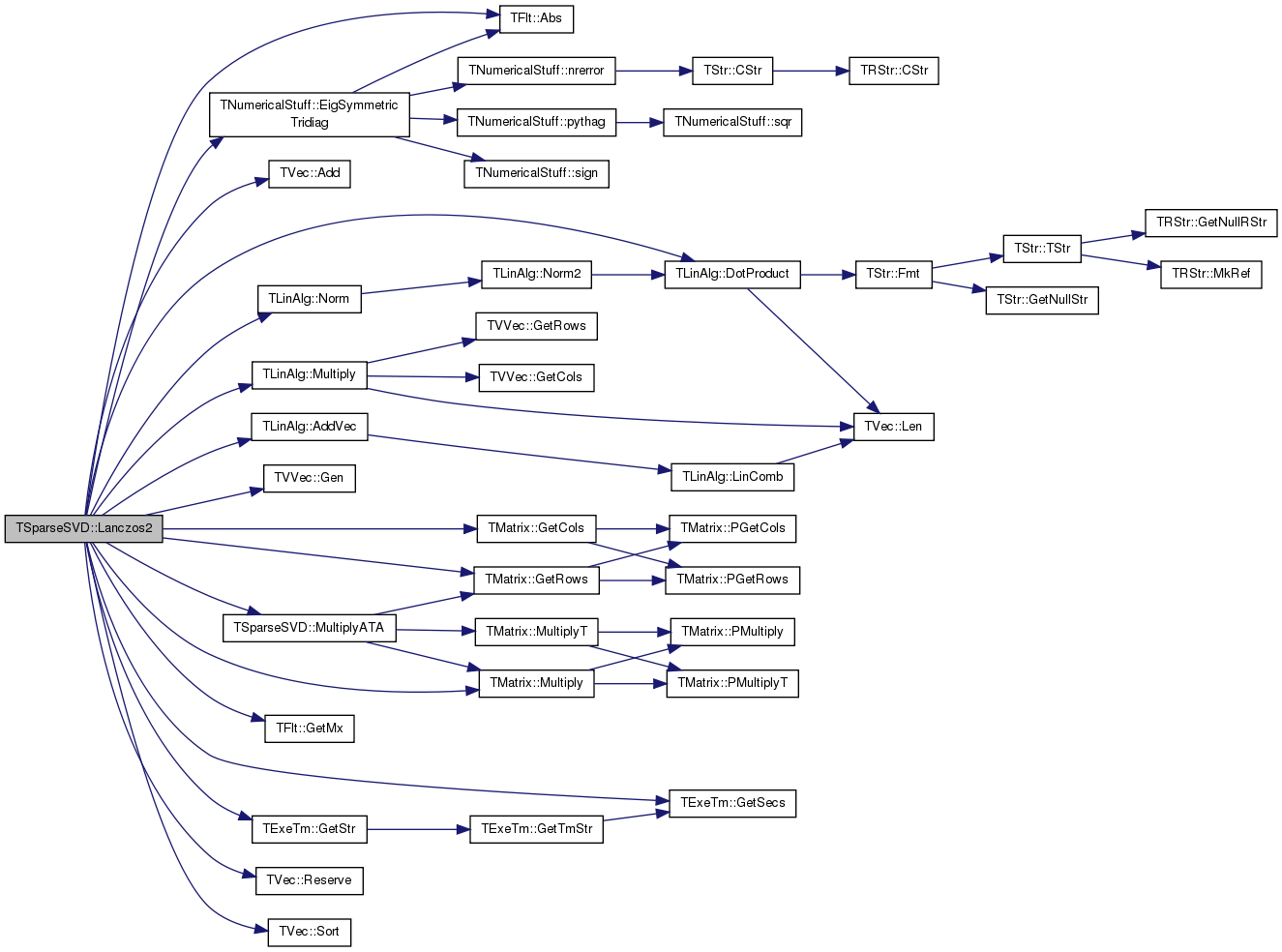 References TFlt::Abs(), TVec< TVal, TSizeTy >::Add(), TLinAlg::AddVec(), TLinAlg::DotProduct(), TNumericalStuff::EigSymmetricTridiag(), TLAMisc::FillIdentity(), TVec< TVal, TSizeTy >::Gen(), TMatrix::GetCols(), TMatrix::GetRows(), IAssert, TVec< TVal, TSizeTy >::Last(), TVec< TVal, TSizeTy >::Len(), TMatrix::Multiply(), MultiplyATA(), TLinAlg::MultiplyScalar(), TLinAlg::Norm(), and TVec< TVal, TSizeTy >::Sort().