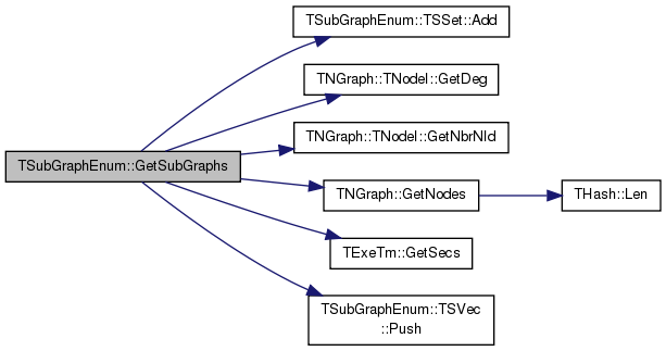 References TSubGraphEnum< TGraphCounter >::TSSet::Add(), TNGraph::TNodeI::GetDeg(), TNGraph::TNodeI::GetNbrNId(), TNGraph::GetNodes(), TExeTm::GetSecs(), and TSubGraphEnum< TGraphCounter >::TSVec::Push().