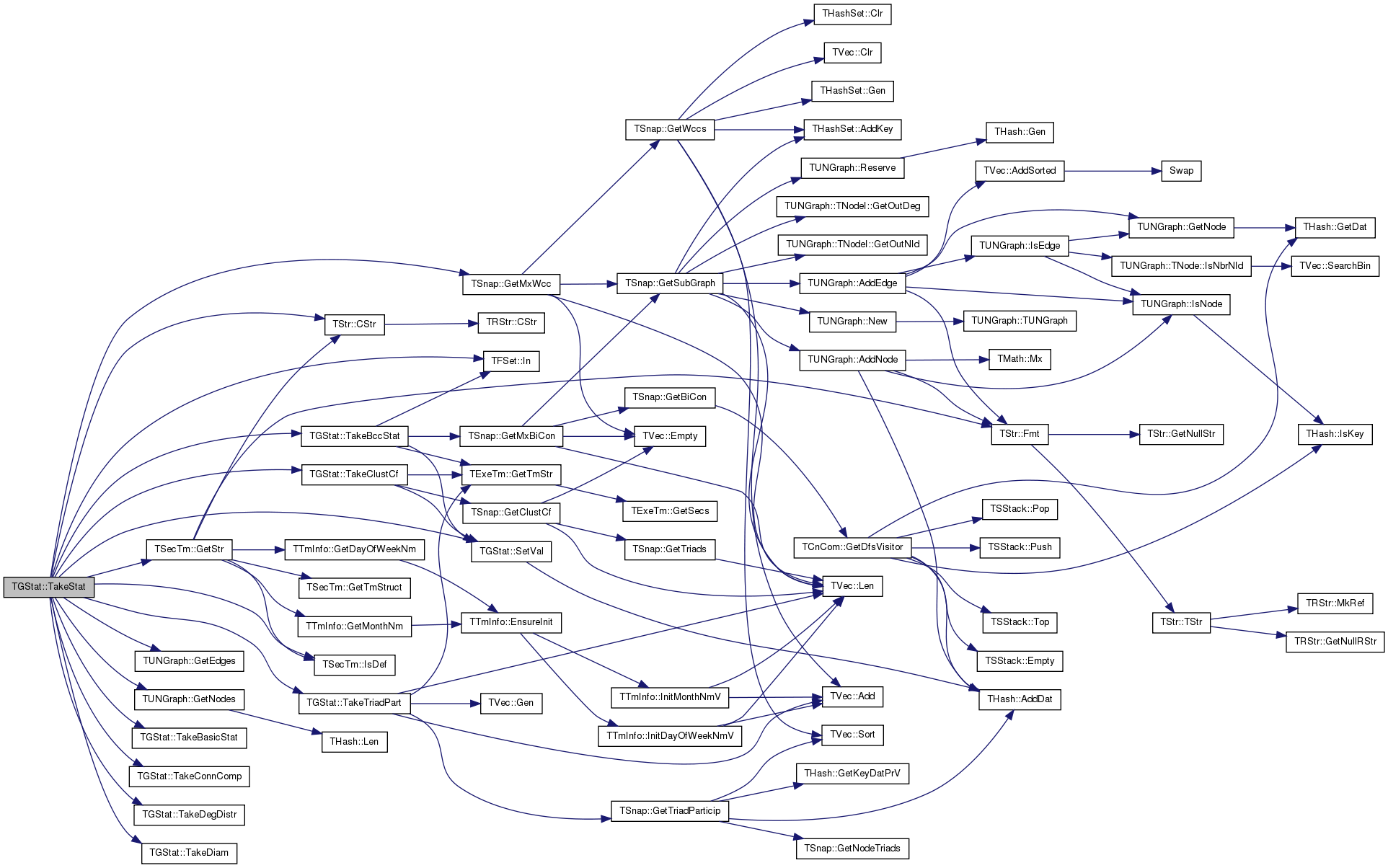 | void | TakeStat (const PUNGraph &Graph, const TSecTm &Time, TFSet StatFSet, const TStr &GraphName) |
