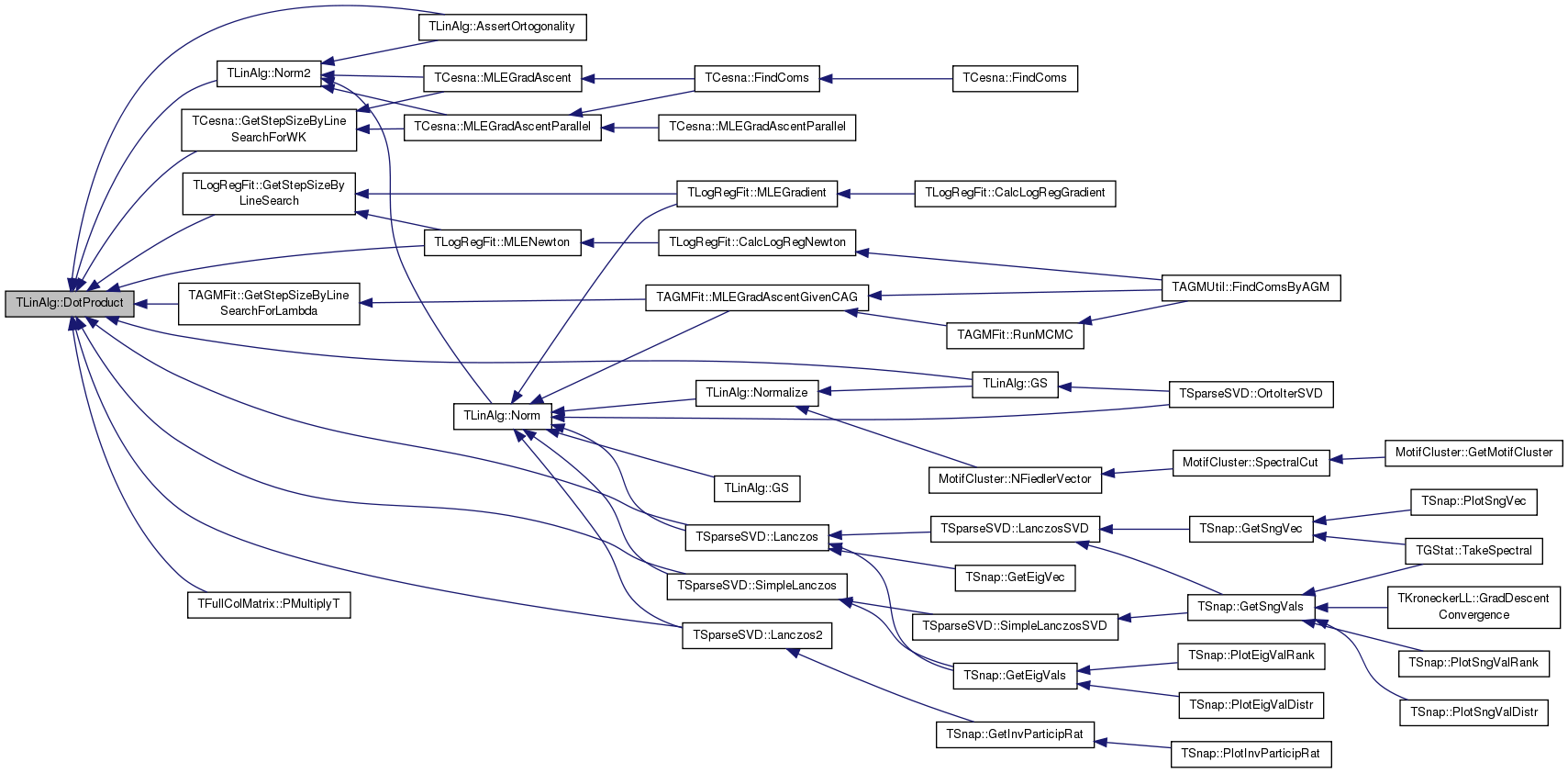 Referenced by AssertOrtogonality(), TLogRegFit::GetStepSizeByLineSearch(), TAGMFit::GetStepSizeByLineSearchForLambda(), TCesna::GetStepSizeByLineSearchForWK(), GS(), TSparseSVD::Lanczos(), TSparseSVD::Lanczos2(), TLogRegFit::MLENewton(), Norm2(), TFullColMatrix::PMultiplyT(), and TSparseSVD::SimpleLanczos().
