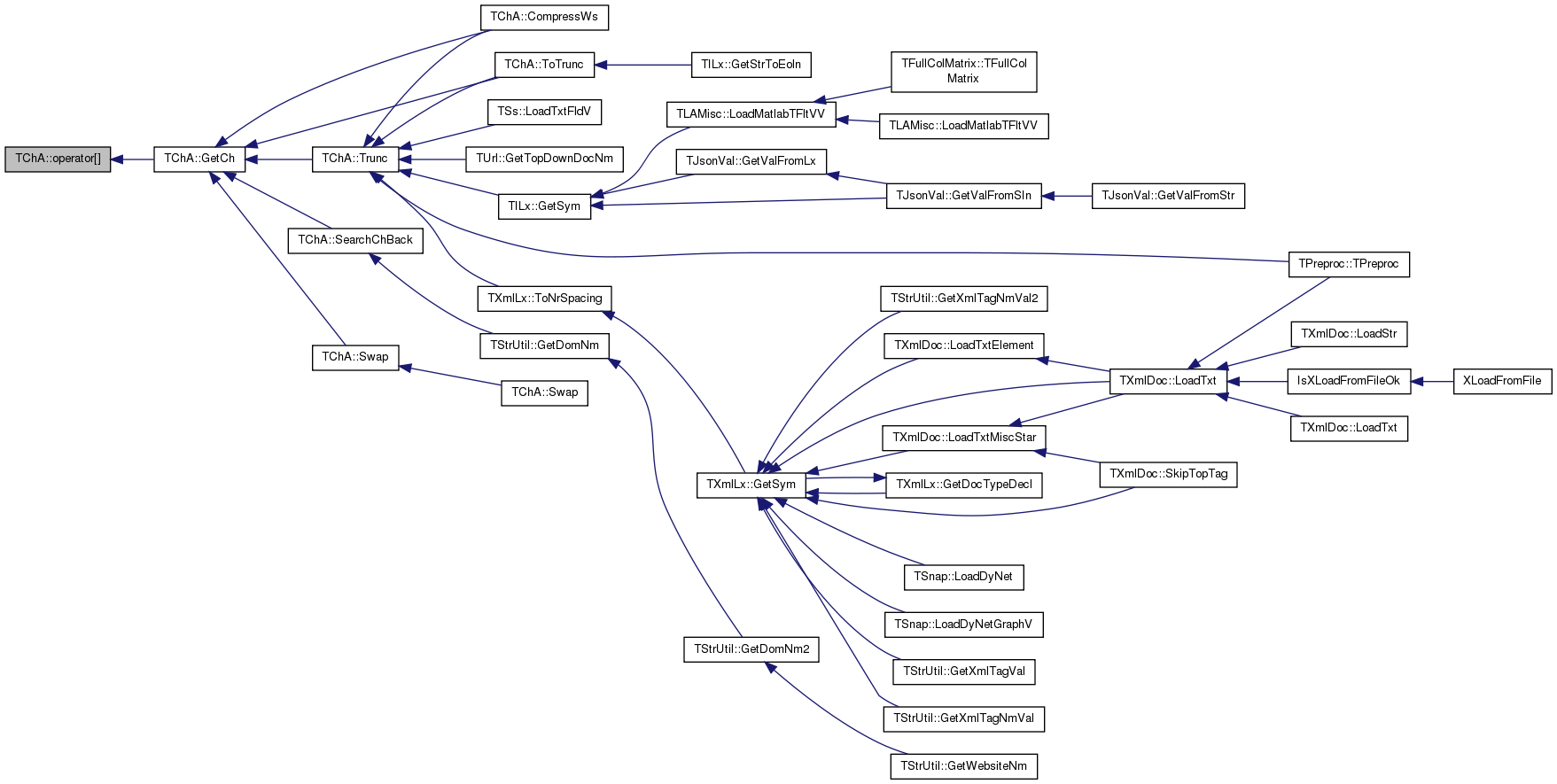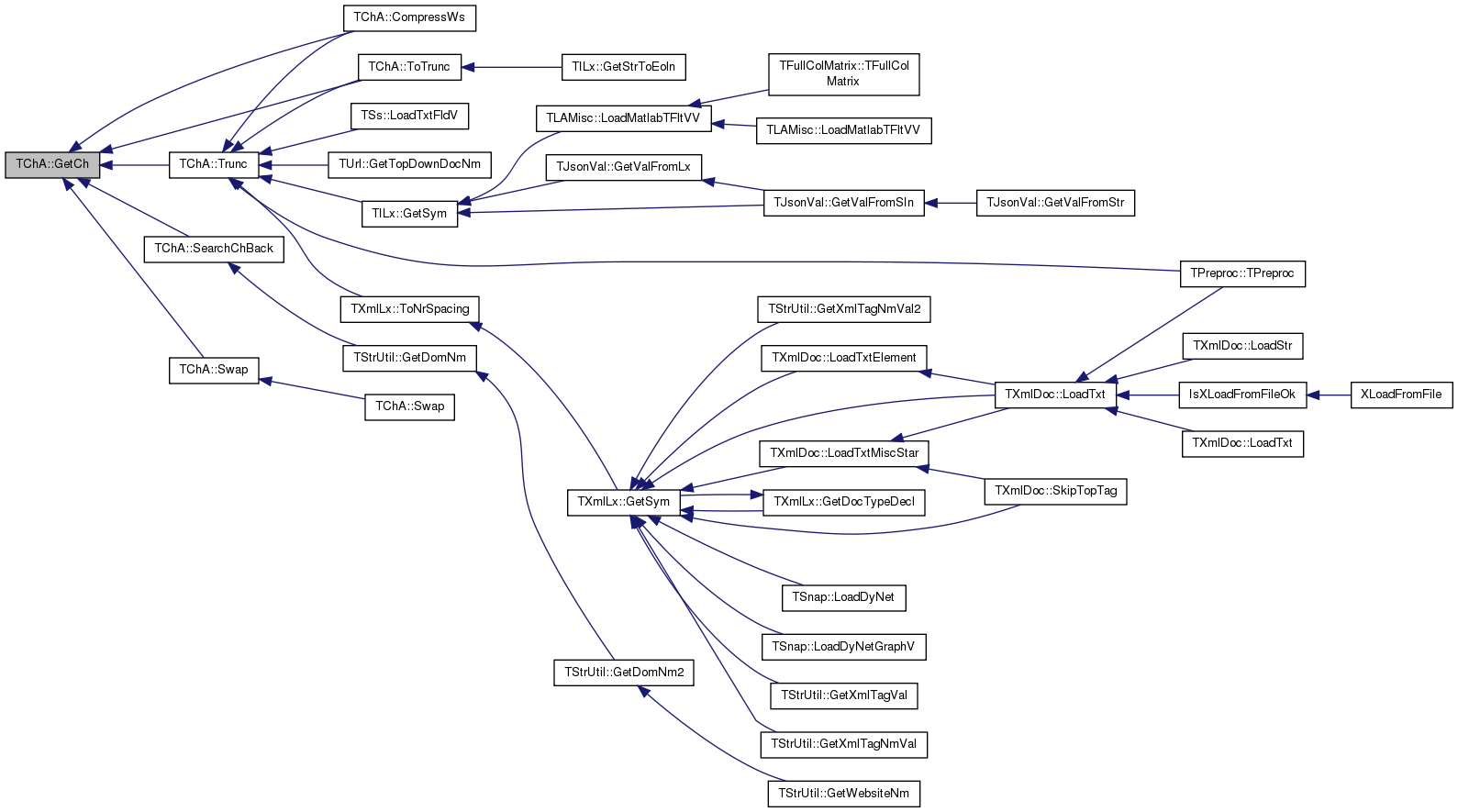 Referenced by AddChTo(), ChangeCh(), CompressWs(), CountCh(), TUrl::DecodeUrlStr(), TUrlLx::Eof(), THtmlLx::GetAsciiStr(), TXmlLx::GetCDSect(), TUStr::GetChTypeStr(), TStrUtil::GetCleanStr(), TStrUtil::GetCleanWrdStr(), THtmlLxChDef::GetCSZFromWin1250(), THtmlLxChDef::GetCSZFromYuascii(), TStrUtil::GetDomNm(), THtmlLx::GetEscapedStr(), TStr::GetFNmStr(), THtmlLxChDef::GetIsoCeFromYuascii(), THtmlLxChDef::GetLcChA(), TSsParserMP::GetLnStr(), TSsParser::GetLnStr(), TStrUtil::GetShorStr(), GetSubStr(), TXmlLx::GetSym(), TXmlParser::GetSym(), TXmlObjSer::GetTagNm(), TTm::GetTmFromIdStr(), THtmlLxChDef::GetUcChA(), TUrl::GetUrlSearchStr(), TXmlLx::GetUsAsciiStrFromXmlStr(), TStrUtil::GetWebsiteNm(), THtmlLxChDef::GetWin1250FromYuascii(), TXmlDoc::GetXmlStr(), TXmlLx::GetXmlStrFromPlainStr(), IsPrefix(), THttpLx::IsRespStatusLn(), IsSuffix(), TXmlLx::IsTagNm(), operator+=(), TUniChDb::TSubcatHelper::ProcessComment(), TSOut::PutStr(), TStrUtil::RemoveHtmlTags(), TSs::SaveTxt(), SaveTxt(), SearchCh(), SearchChBack(), TStrUtil::SplitSentences(), TStrUtil::StripEnd(), TMd5Sig::TMd5Sig(), TMIn::TMIn(), TXmlLx::ToNrSpacing(), and ToTrunc().