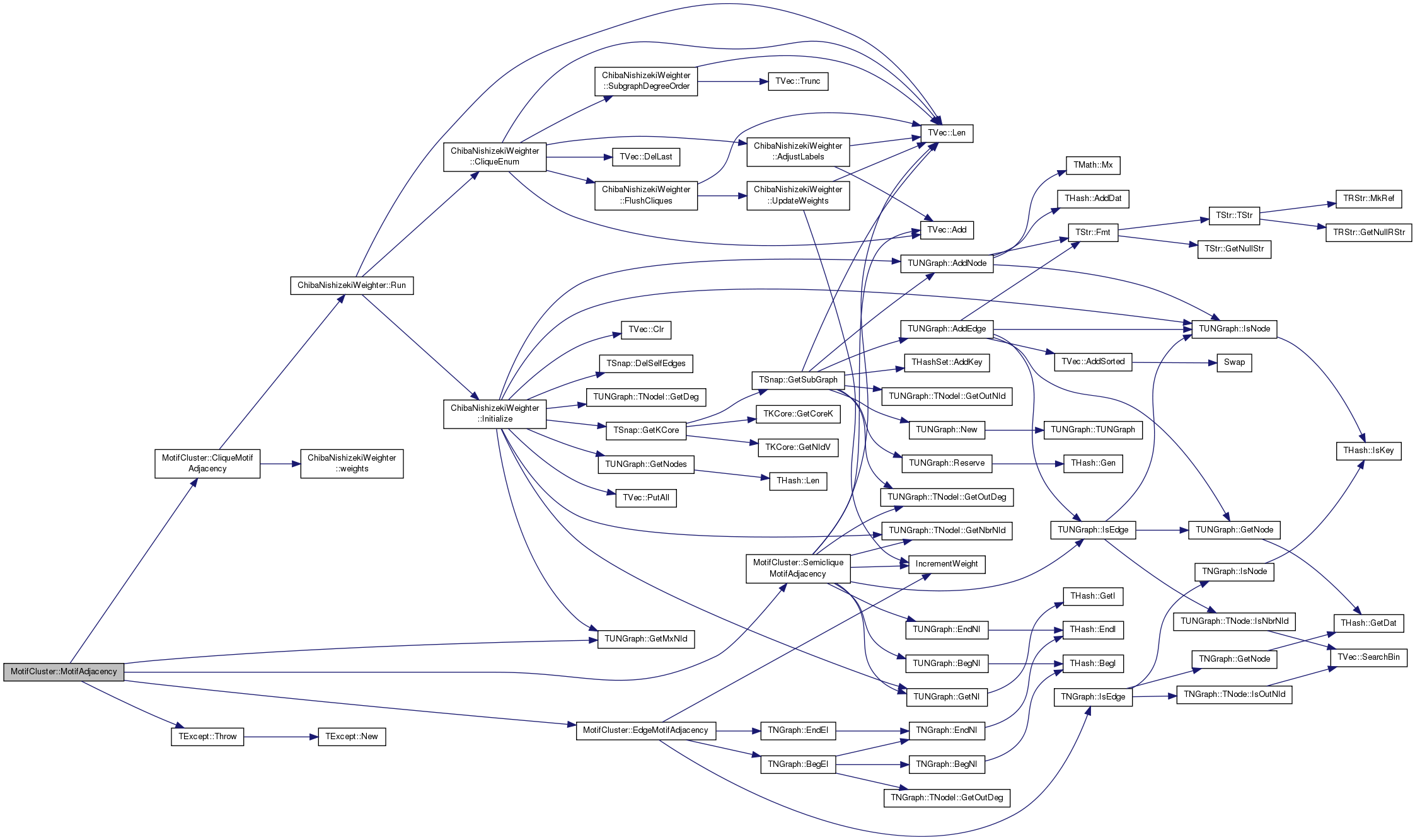 void MotifCluster::WedgeMotifAdjacency ( PNGraph  graph,